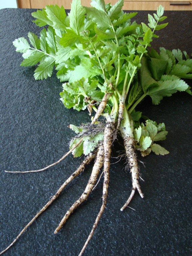 The always wise majordomo of Battery Rooftop Garden, Annie Novak, advised in March that although we had been lucky the roots were still tasty after their long winter nap, the incipient root hairs were a sign that they should be eaten promptly. Ignoring this sage advice, I failed to harvest and eat the remaining crop until yesterday, by which time the now hirsute roots were slightly woody, with a dull flavor. I eat them anyway.