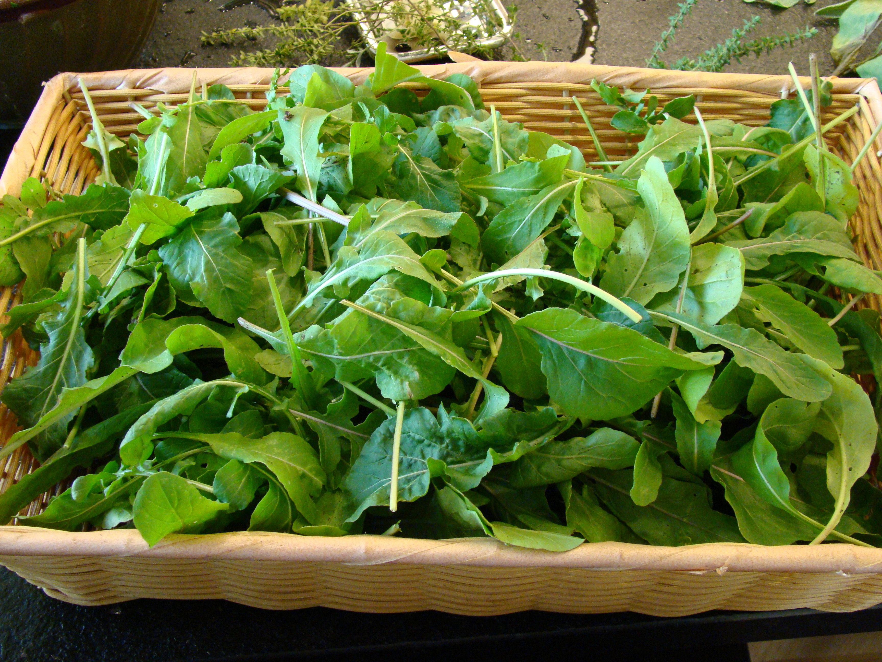 - The final salad course was a rockett (arugula) salad (from the roof) supporting yellow and purple beets (also from the roof), which had been roasted.