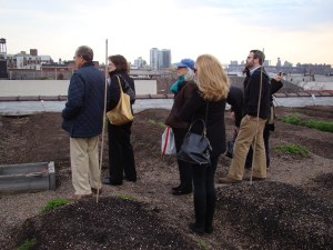 Although Battery Rooftop Garden is located at the tip of Manhattan, its roots are in Greenpoint, Brooklyn, specifically at Annie Novak’s Eagle Street Rooftop Farm (see www.rooftopfarms.org ). Monday night the Battery Rooftop Gardener, together with 30 friends, set out across the East River for Greenpoint. The evening started with a visit to Eagle Street, where Annie explained the origins of the 6,000 square foot farm and partnership with Growing Chefs (www.growingchefs.org ):