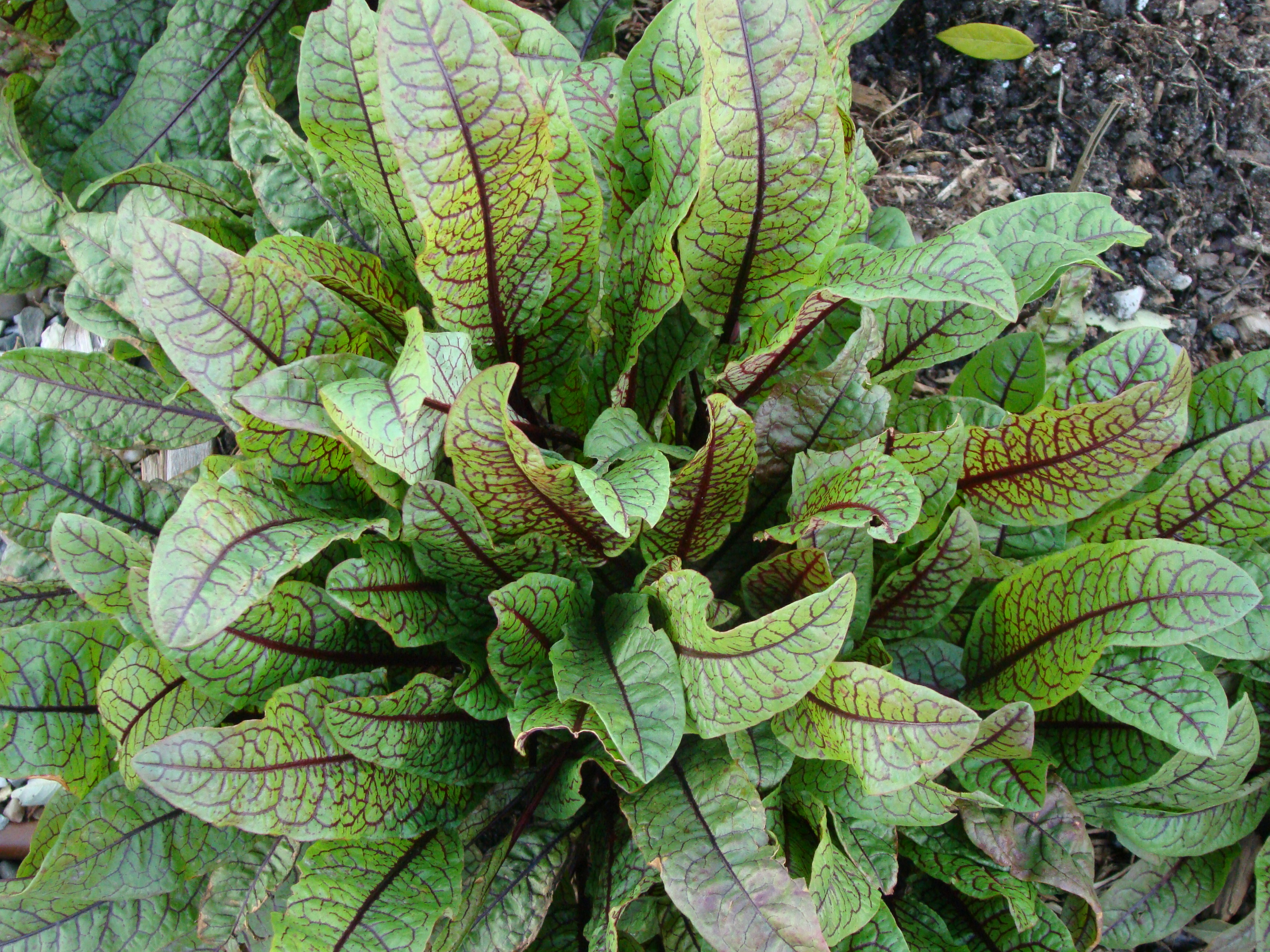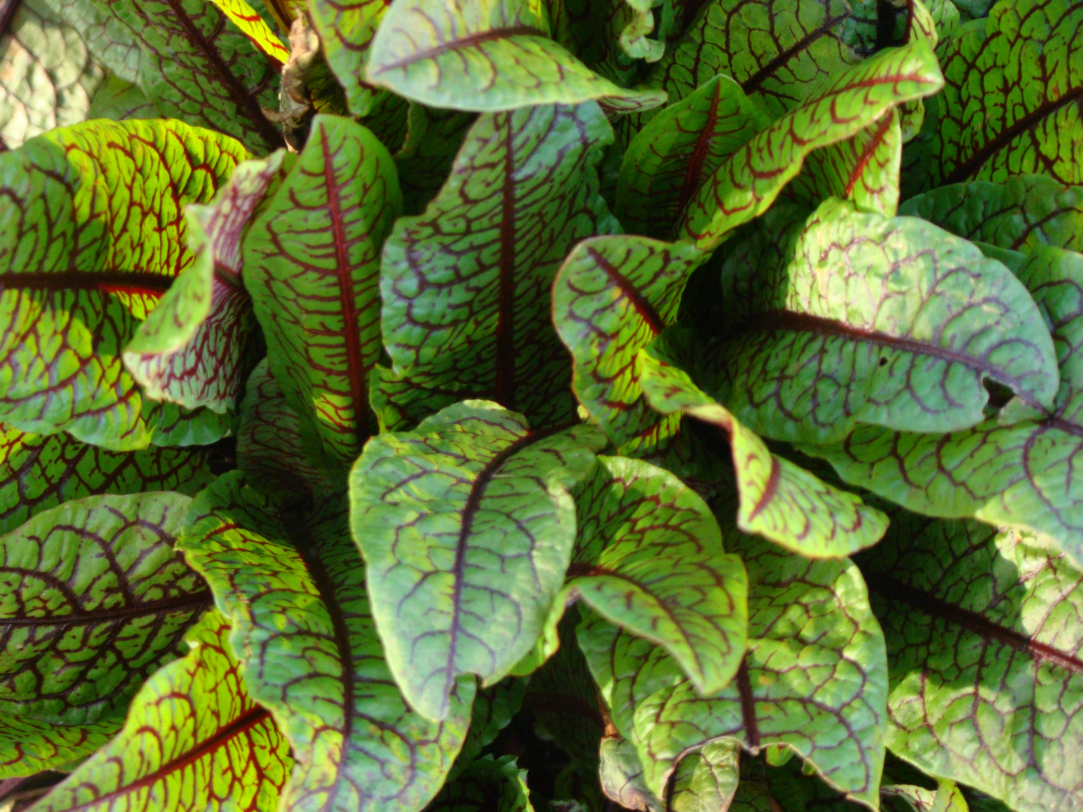 Take my Sorrels. Two more hard-working plants would be hard to find. The first, Rumex sanguineus, is called by its commercial promoters “Red-Veined Sorrel,” which the seed-catalog writers presumably determined was less of a deterrent than the traditional “Bloody Sorrel,” or even better, “Bloody Dock.” She is a real showstopper: