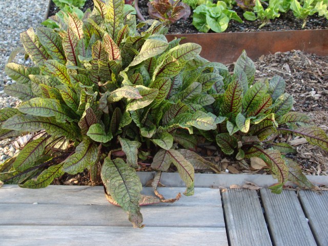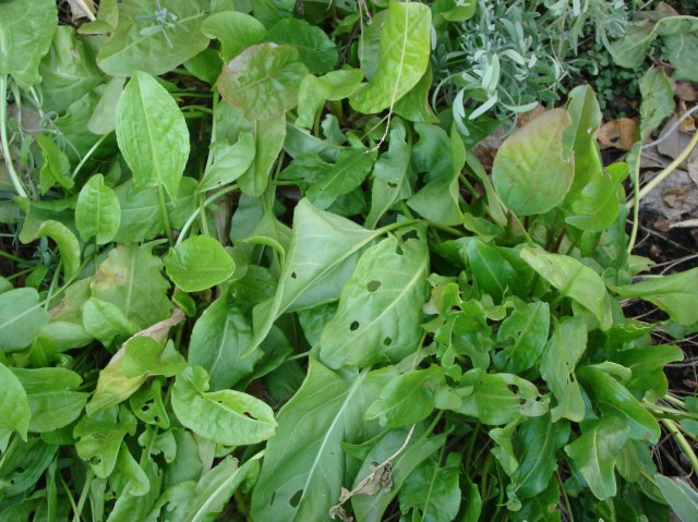 In contrast, Rumex acetosa is looking a little beat-up, but still delivers a wonderful lemon flavor to salads or soups: