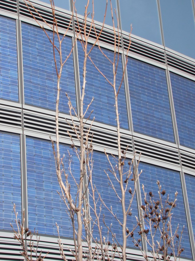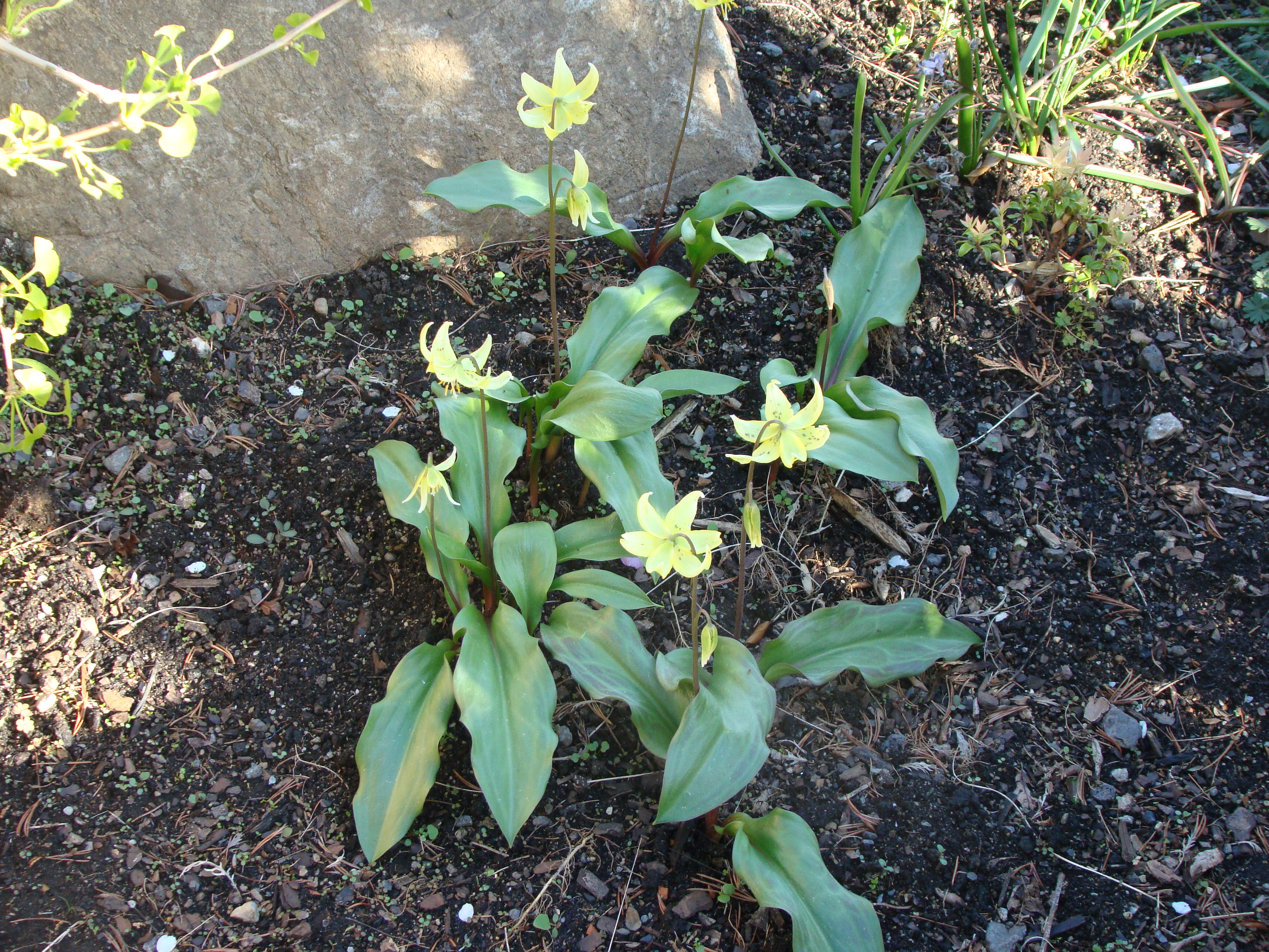 Yes, you saw right. Erythronium americanum, the Trout Lily. Any gardener will tell you that, as a woodland spring ephemeral, it must be grown in acidic fluff on the forest floor, exposed to early spring light, then allowed to retire for the summer among the roots, litter and shade of its arboreal hosts. But here it is, on the 35th floor, with only a pruned Callicarpa for cover and companionship. Like our urban hipster on his voyage of self-discovery in the woods, the Trout Lily’s urban adventure allows us to see it in a wholly different light.