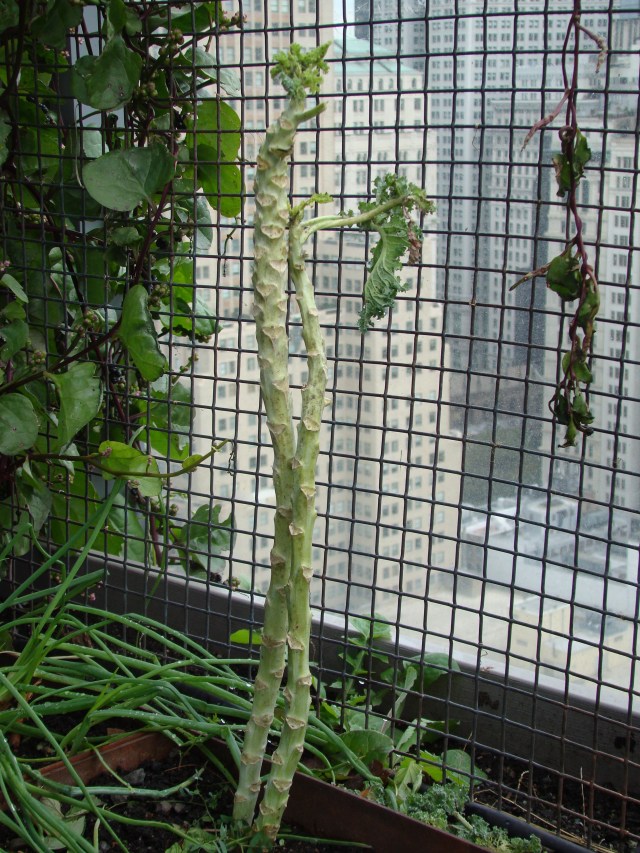 Only the kale shed its leaves to save itself, looking remarkably like a palm tree following a hurricane: