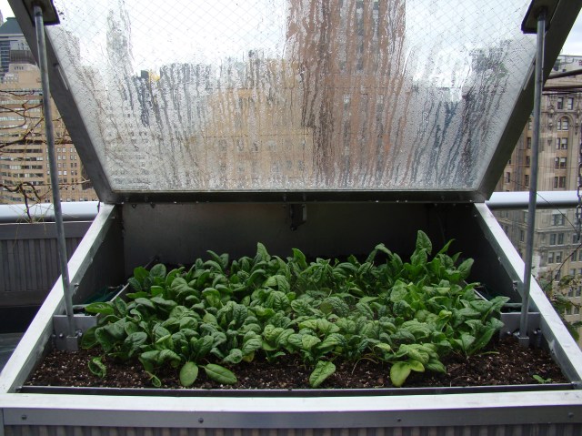 The spinach slept snugly in its armored cold frame: