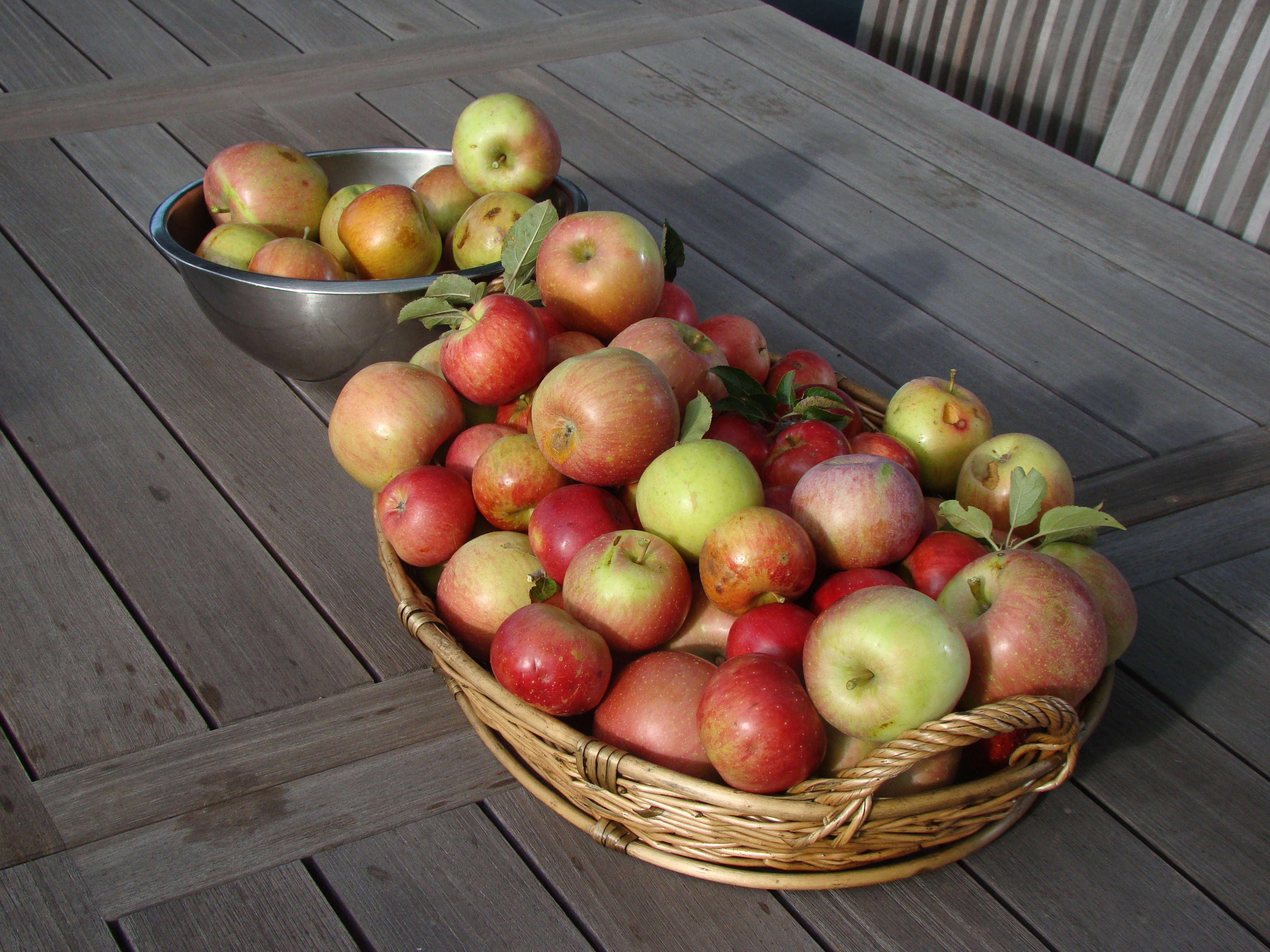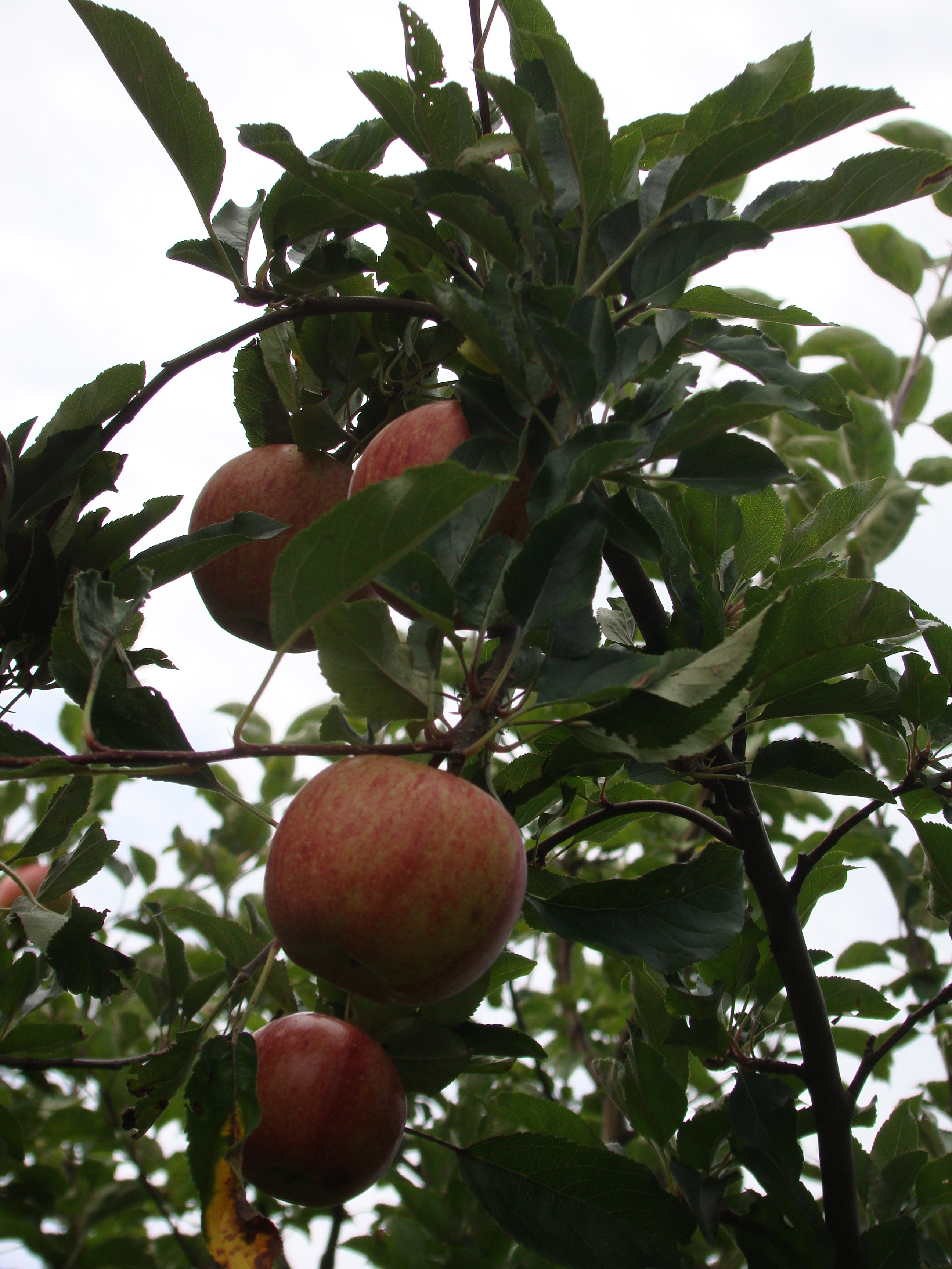 Nonetheless, the experiment was not abandoned. We pruned properly, but did not spray. Mid-way through the summer, it looked like we might be experiencing a major pomological turn-around. And then, suddenly, it was late September, and the boughs drooped low toward the roof with a heavy burden of good-looking fruit.