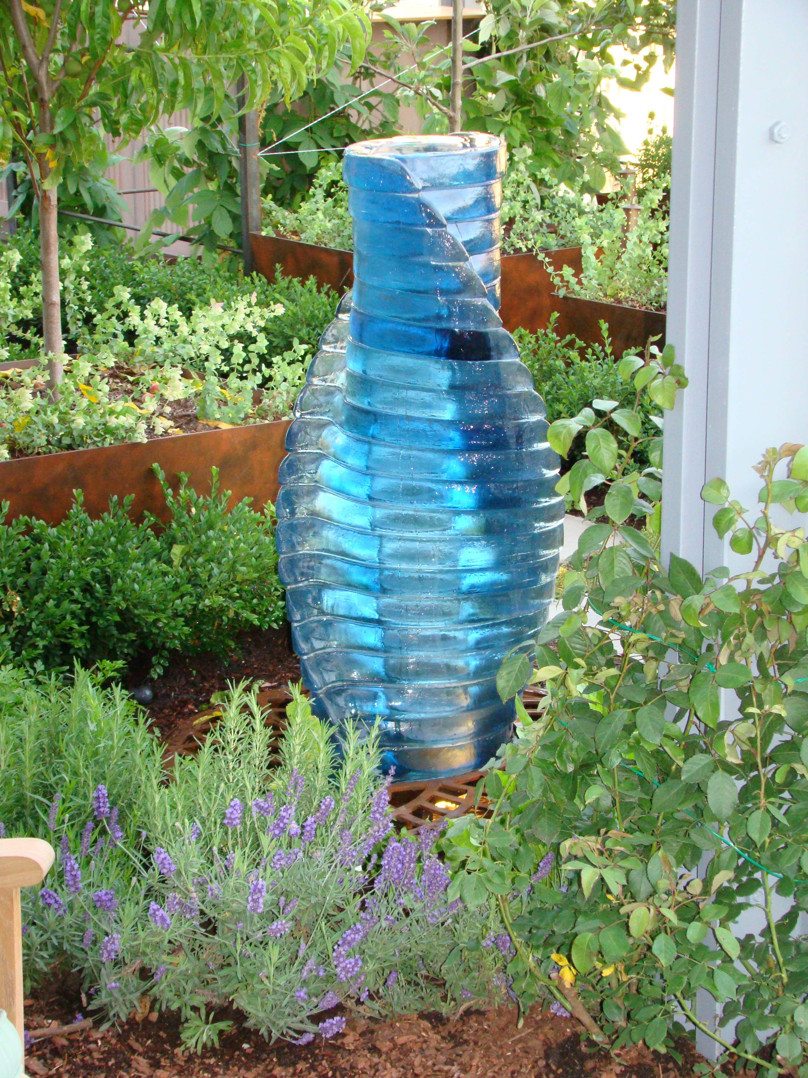 The Herb Garden sits at the entrance to the Orchard, nestled around the two “Double-Helix” Fountains. Herbs include: